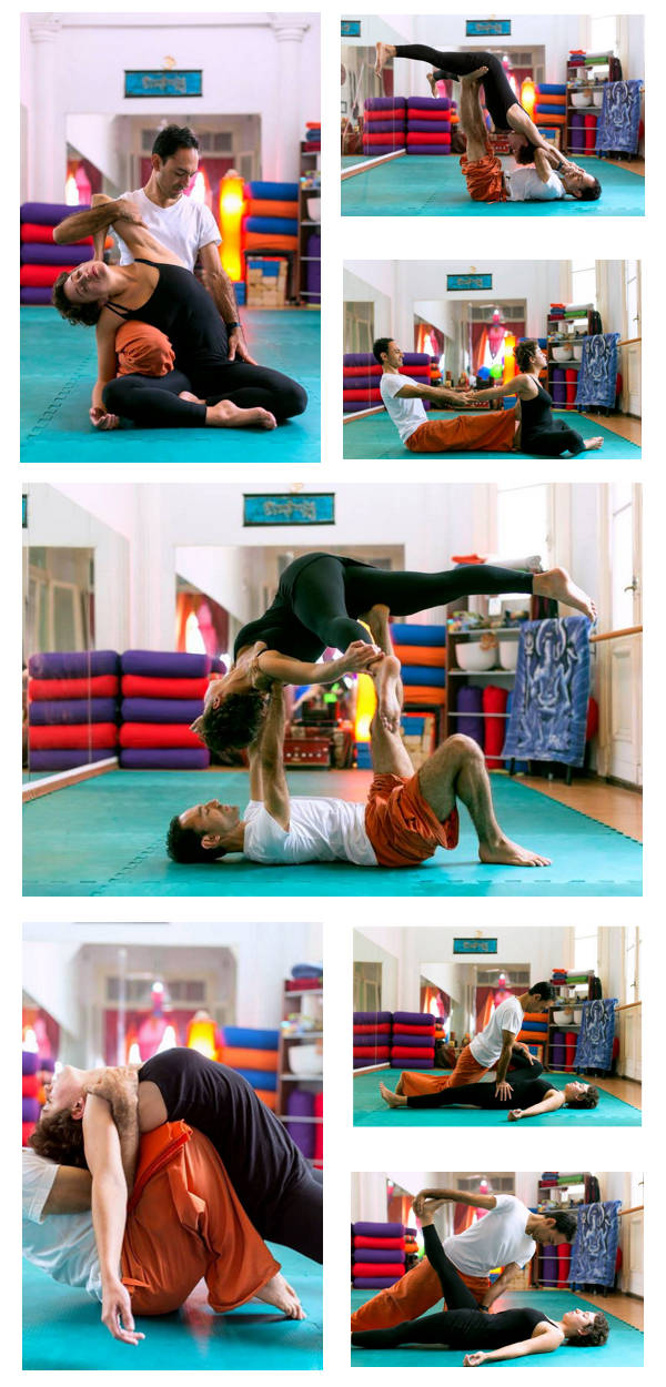 La unión de estos tres linajes ancestrales generan una nueva práctica denominada ACROYOGA, la cual integra la sabiduría del autoconocimiento y la búsqueda espiritual del yoga, el poder dinámico, la magia, el vértigo, la alegría y el juego de la acrobacia y el amor compasivo en la capacidad de dar del masaje tailandés.